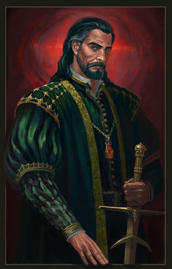 - Famille Godunov : Si les Talos firent fortune en s'appropriant l'or, les Godunov comprirent rapidement qu'il était plus rentable de vendre des pioches pendant que les autres s'entretuent. La famille Godunov possède la plupart des échoppes d'artisans de la ville, et profitent de leur monopole pour imposer des tarifs écrasants. Les Godunov sont connu pour être la plus sobre des familles de la triarchie, peu bavards et affichant rarement leurs émotions, ils préfèrent souvent le poison à la force brute. Leur rancune est connue de tous, ils sont certainement la famille la plus crainte, capables de préparer des complots générationnels pour punir un ennemi.