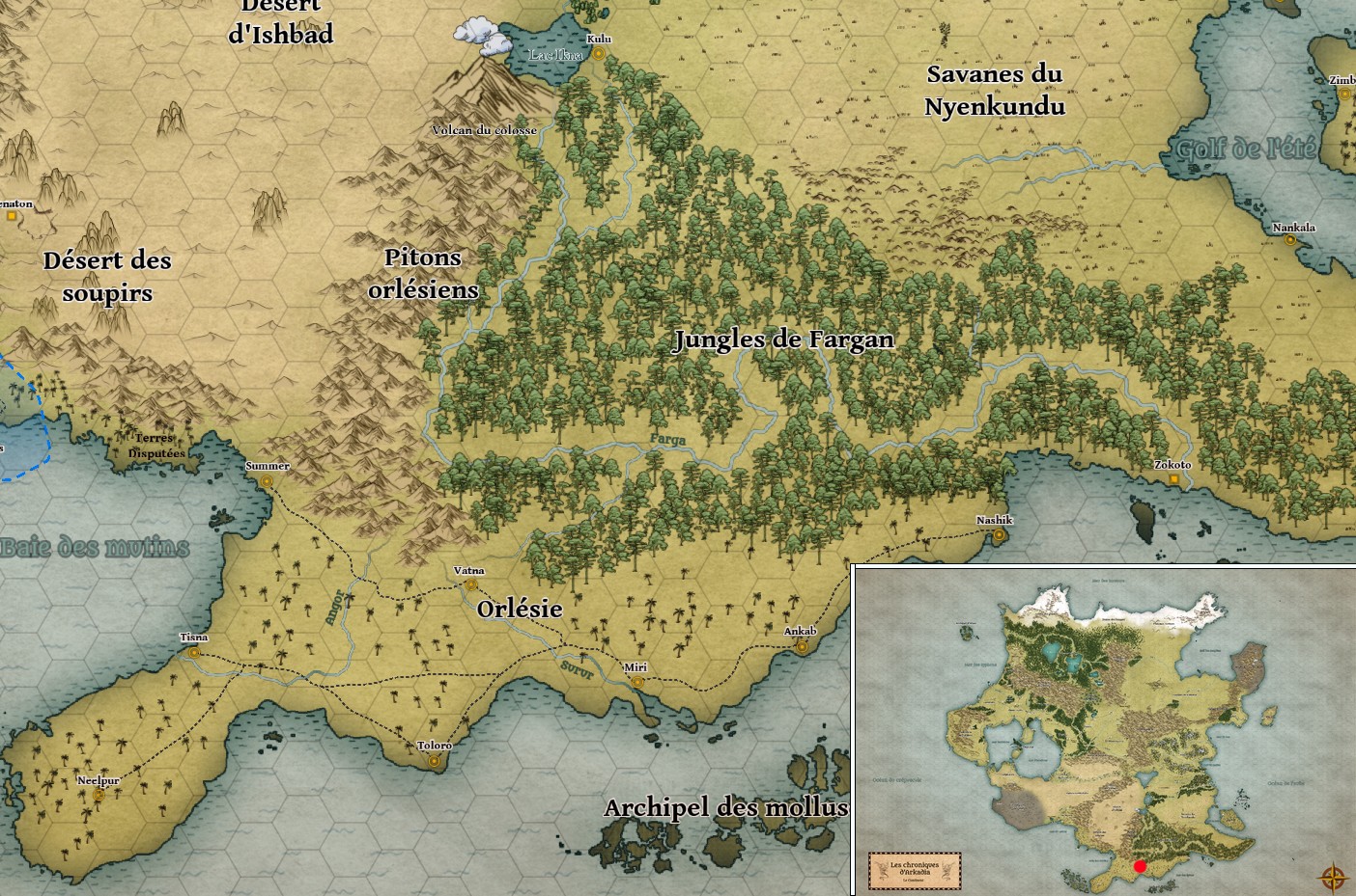 L’Empire d’Orlu était un puissant état du sud du continent, occupant l’actuel territoire de l’Orlésie, il a été fondé durant l’âge des elfes par le peuple Maekari, qui conquit le territoire sur le Royaume de Fargan, poussant les elfes à se replier dans les jungles où ils résident encore aujourd'hui. Il établit rapidement sa domination sur les mers du sud en subjuguant les tribus humaines des alentours. Il était dirigé par l'Empereur Arrax, un être immortel selon la légende, qui aurait reçus son immense pouvoir des dieux eux-mêmes.