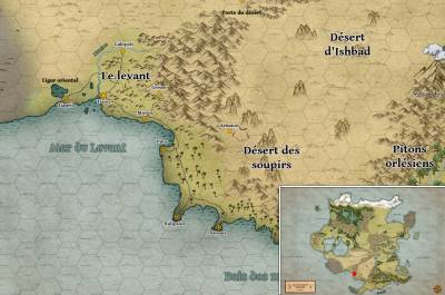 Le levant est une région relativement sûre et civilisée pour peu que l'on ne s'aventure pas trop loin dans les Montagnes. Il arrive cependant que des tribus mudjaïrah s'attaquent aux régions frontalières, ou que des pirates venus de la Brèche s'attaquent aux villages côtiers.