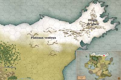 Les plateaux venteux sont une région nordique située au nord des steppes du kanakat caractérisée par son climat arctique et ses grands plateaux rocailleux balayés par les vents glaciales. C'est une région sauvage est peu peuplée, sinon par les hordes d'orcs des steppes, qui l'arpentent de long en large suivant les migrations des grands troupeaux de rennes et de mammouth laineux.