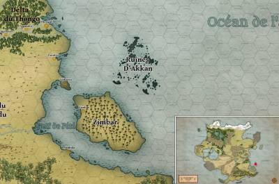 Depuis ce jour, Akkan est un lieu maudit, où aucun marin sain d'esprit ne se risque d'approcher. Depuis le large, on aperçoit de maigres îlots couverts de ruines noircies, abritant les restes de l'ancienne civilisation des akkans. On dit qu'il règne en ces lieux un grand mal, les eaux brumeuses abritant des monstres aveugles et difformes, aucun des rares fou s'étant aventuré dans l'archipel n'est jamais revenu. A la nuit tombée, on dit que des lueurs venimeuses émanent des bâtiments antiques, les zimbariens pensent que des créatures aussi anciennes que malveillantes auraient pris possession des restes d'Akkan.