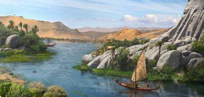 En amont du fleuve se trouve la grande catharacte, la plus grande cascade d'eau du monde connu, les navires commerciaux doivent faire halte dans la ville d'Agrab, où les marchandises sont descendues à dos de mûles quelques kilomètre en aval.
