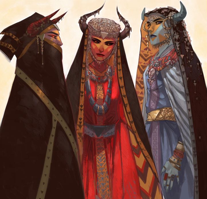 - Langue : les Maekari parlent l’orlu, la longue commune orlésienne, il n’est pas rare de trouver des Maekari sachant parler couramment la langue levantine, ou d’autres langues humaines.