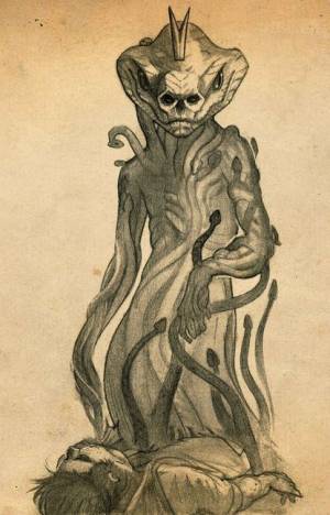 Gazarak est un dieu sombre de l'âge du mythe, il est surnommé le dieu serpent et est la déité principale du culte des envouteurs de l'Empire Kadorien. Il est décrit comme le père des savoirs obscures et de la magie noire, il offre ses faveurs à ceux qu'il considère digne de reçevoir les connaissances antédiluviennes sur la magie la plus sombre. Ses adeptes sont des mages en quête d'un grand pouvoir, mais le dieu est perfide, il n'hésite pas à manipuler les mortels trop ambitieux pour accomplir ses sombres desseins, les tourmantants en leur faisant miroiter le pouvoir suprême sans jamais vraiment le leur accorder. Gazarak est assoiffé de pouvoir, et il encourage ses adeptes à s'aventurer toujours plus loin dans leurs études des savoirs interdits et esotériques.